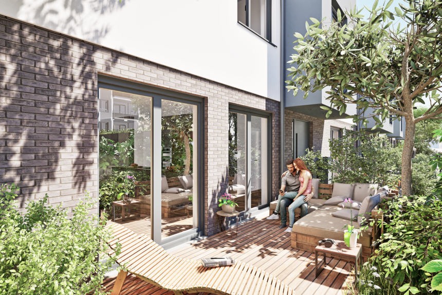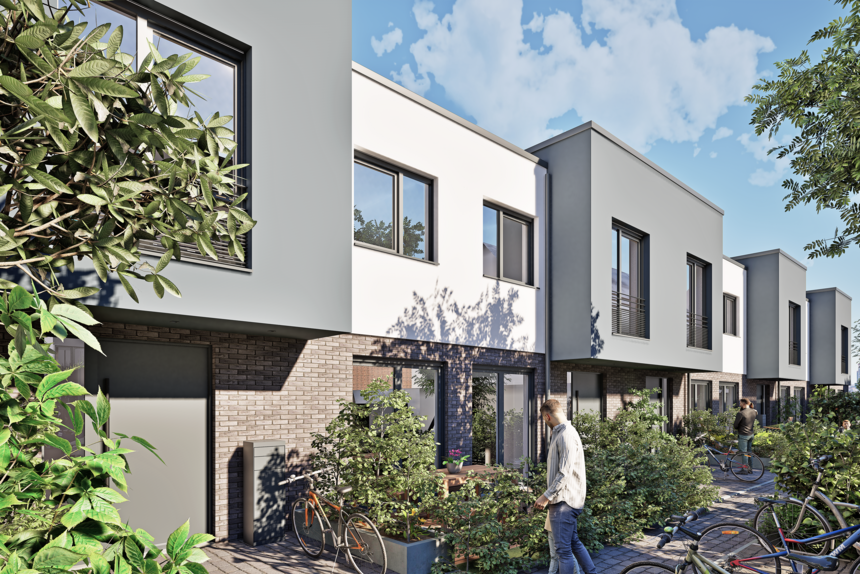 Mitten im urbanen Zentrum von Köln in Ehrenfeld entsteht der Leyenhof mit 5 Stadthäusern und 17 Eigentumswohnungen.