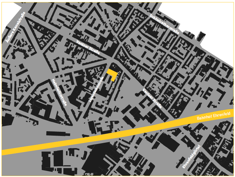 - Der Bahnhof Ehrenfeld ist nur 850m entfernt. Sie sind in nur etwa 15 Minuten am Hauptbahnhof oder 20 Minuten am Kölner Dom.